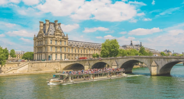 Experience a scenic River Seine cruise in Paris, enjoying stunning views of landmarks, charming bridges, and the city’s enchanting ambiance.